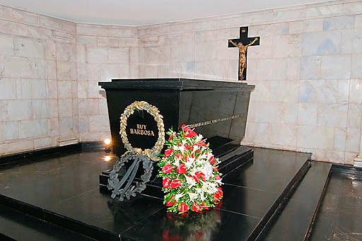 Os restos mortais de Ruy Barbosa e de sua esposa, Maria Augusta, estão depositados no Fórum Ruy Barbosa, sede do Tribunal de Justiça da Bahia, no bairro de Nazaré, em Salvador. O local, escolhido para homenagear seu legado como jurista e político brasileiro, abriga um mausoléu, além de bustos e objetos que celebram sua vida e carreira.