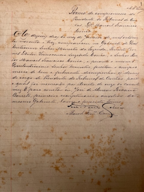 A seguir, os termos de posse dos primeiros Presidente, Ministros e Secretário do Tribunal.